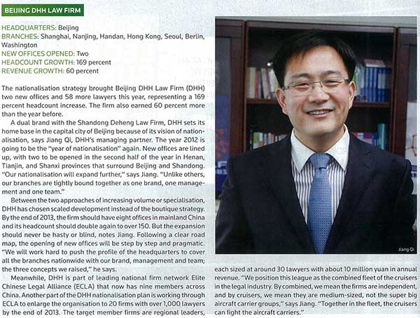 - 北京德和衡入选ALB中国2012年度发展最快律师事务所前十名