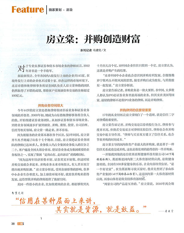 《方圆律政》房立棠:并购创造财富